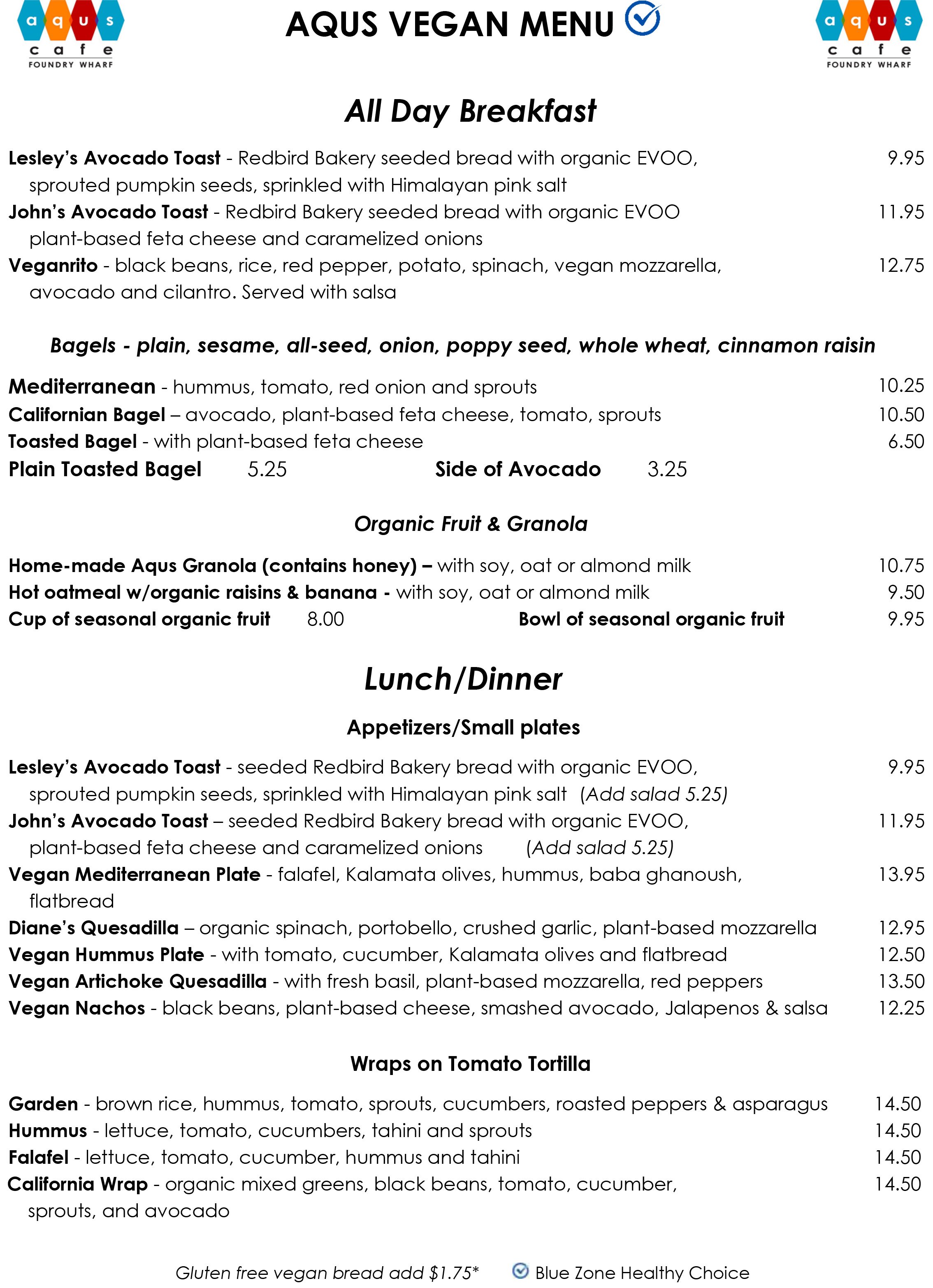 Vegan Menu